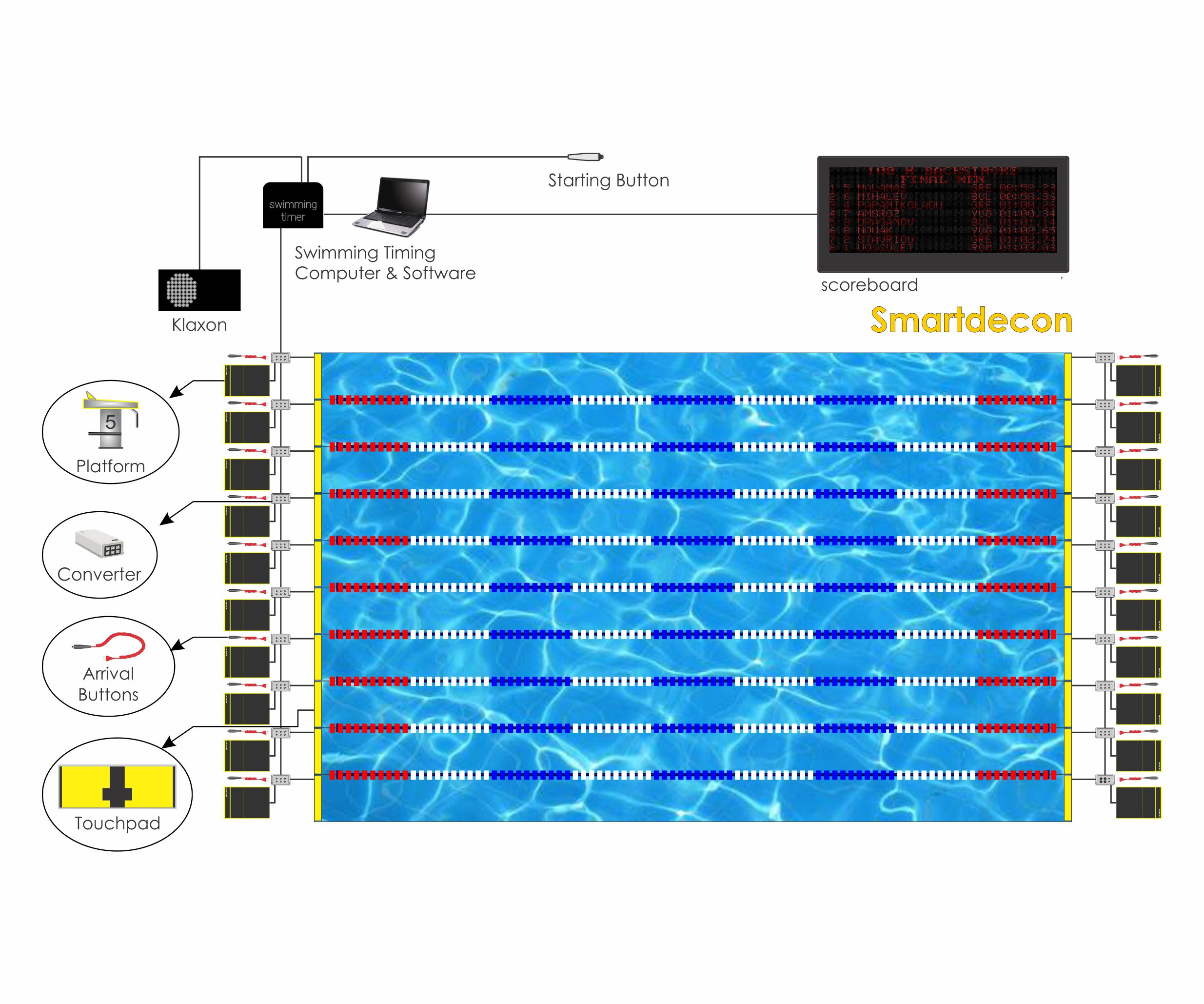 Η Smartdecon προσφέρει υψήλης ακρίβειας συστήματα χρονομέτρησης κολύμβησης. Η ακρίβεια χρόνου και η υψηλή απόδοση, που χαρακτηρίζουν τα συστήματα της Smartdecon, τα καθιστούν μία άριστη λύση για Ολυμπιακούς αγώνες, Παγκόσμια καθώς και Εθνικά Πρωταθλήματα. |